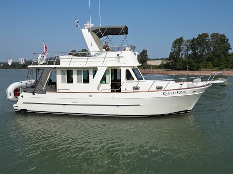 Powered by a Cummins QSB 5.9L (230 hp) diesel and equipped with a bow thruster, she is economical, quiet, and easy to maneuver. Her practical layout features a bright salon, well-equipped galley, island queen berth, separate shower, and excellent storage. Outdoor spaces include a covered cockpit, expansive flybridge, and wide, secure walkaround decks. Meticulously maintained with a detailed maintenance log, Raven Song is ready for her next adventure.