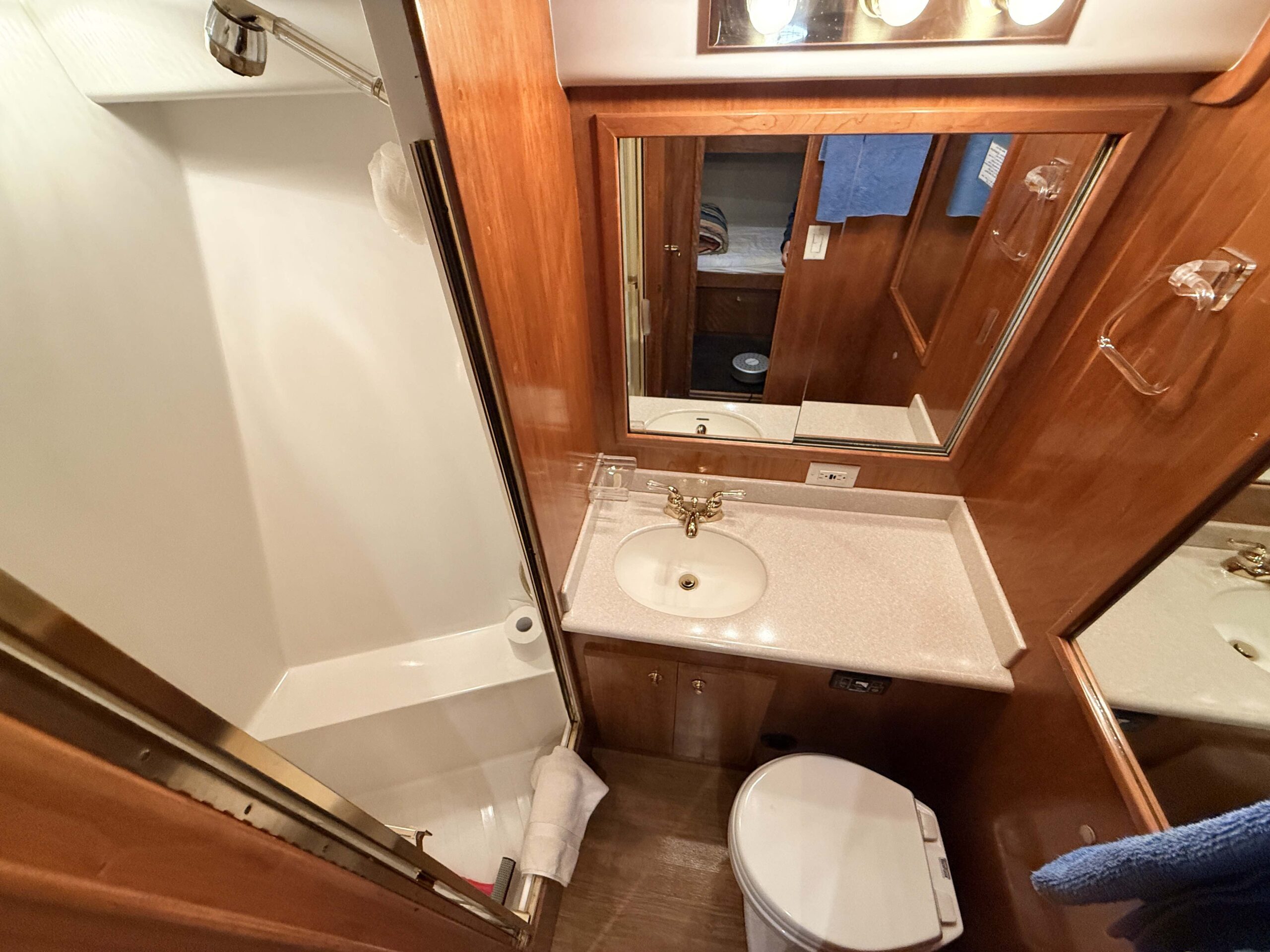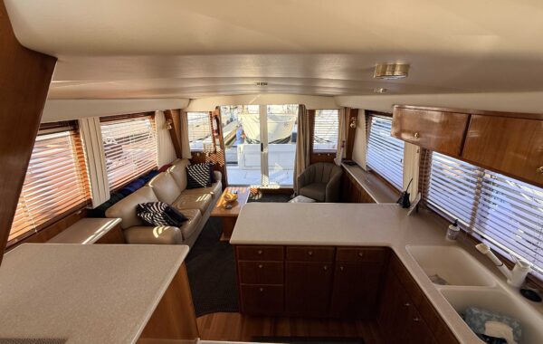 Comfortable Year-Round Cruising – Excellent Condition & Maintenance History – Professionally serviced, two-owner vessel with comprehensive maintenance records and recent mechanical updates (e.g., new batteries, new exhaust riser, clean engine room).