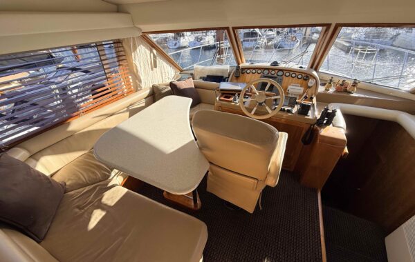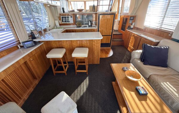 Interior stairs lead safely to the spacious flybridge, providing easy movement between decks in all weather conditions.